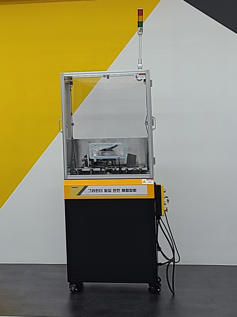 산업현장에서 그라인더를 다룰 때 발생할 수 있는 위험상황을 체험할 수 있는 장비로 체험장이나 산업현장에서의 장비의 구현이 어려웠던 점을 착안하여 만든 체험장비임. 그라인더로 작업 시 튀는 형상을 묘사하였으며 핸들을 자유자재로 사용이 가능.