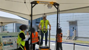 본 장비는 작업자가 안전벨트를 착용한 상태에서 VR 콘텐츠를 통해 고소 작업 중 발생할 수 있는 추락 상황을 체험하는 실감형 교육 시스템입니다. 하부의 자유낙하 구조 시스템이 VR 영상과 연동되어 실제 낙하와 유사한 감각을 구현함으로써, 안전벨트의 보호 효과와 추락 예방의 중요성을 직접 체감할 수 있도록 설계되었습니다. 체험 중심 교육을 통해 산업현장의 추락 사고 예방과 안전의식 향상에 기여합니다.